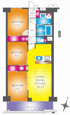 専有面積 78.24u 間取り 3SLDK (LDK13.6)